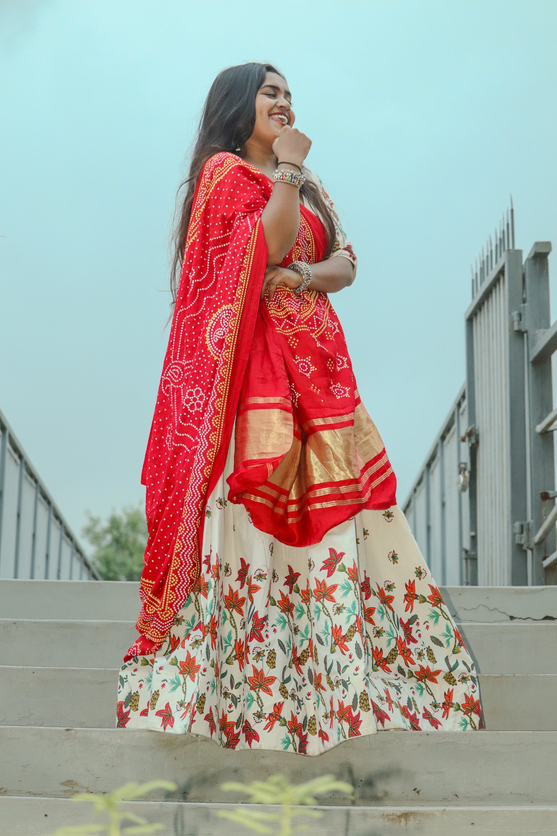 💫 Elegant Floral Chaniya Choli with Red Bandhani Dupatta 💫